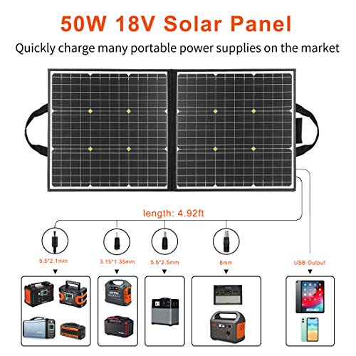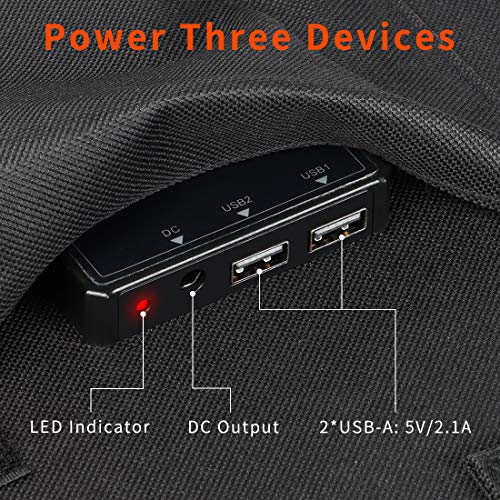 Use The USB And 18V Ports at The Same Time – The solar panel will split the incoming solar power between the two ports to charge devices simultaneously.5V USB and 18V DC dual output keep your USB/DC devices full of juice, without having to rely on a wall outlet, or a power bank, and brings you an unplugged lifestyle.