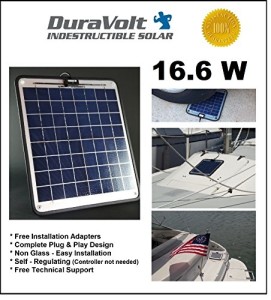 Designed in California and Manufactured to the highest of quality standards. Featuring universal “Plug & Play” design. Easy to install without any prior solar experience. Semi-Flexible but NOT Bendable. BEWARE bendable panels can crack the fragile solar cells. Included are detailed instructions and FREE Make stronger hotline. DuraVolts are fully weatherproof and are perfect for boating and camping. They’re light weight and feature proprietary “non-glass construction”. —- CONSTRUCTION: An unbreakable plastic film surface with semi-flexible aluminum backing make these panels ideal for mounting on flat or gently curved surfaces. Crystalline cells have the industry’s highest conversion efficiency, providing maximum power whilst taking up less space. ——– INSTALLATION: Each and every panel has 4 mounting holes for simple mounting. Out of doors rated power cable that connects directly to your battery through the factory installed fused cigarette lighter plug. Power cable is 10 feet long. —- —-INCLUDED EXTRAS: FREE tech Make stronger, battery clip adapter and battery ring terminal harness. We guarantee 100% customer satisfaction. Try the DuraVolt and if it does not meet your expectations for any reason contact us for a full refund or exchange for a different size unit….. Please contact us if you want assistance choosing the right kind Model :::::: NOTE: User field modifications such as cutting cable or disposing of fused cigarette lighter plug will not void warrantee. —- Low-profile & light weight . 14.1″ L x 15.7″ W x 1/4″ Thick. 10′ cable. Voltage Regulator (Controller) is NOT needed for 12V batteries. —- OPERATION: DV- 16W Light use – like small lights, TV & radio. Running and charging phones & and other electronics (1-4 people). DuraVolt panels are designed to provide reliable solar power for rugged marine and other Out of doors applications.